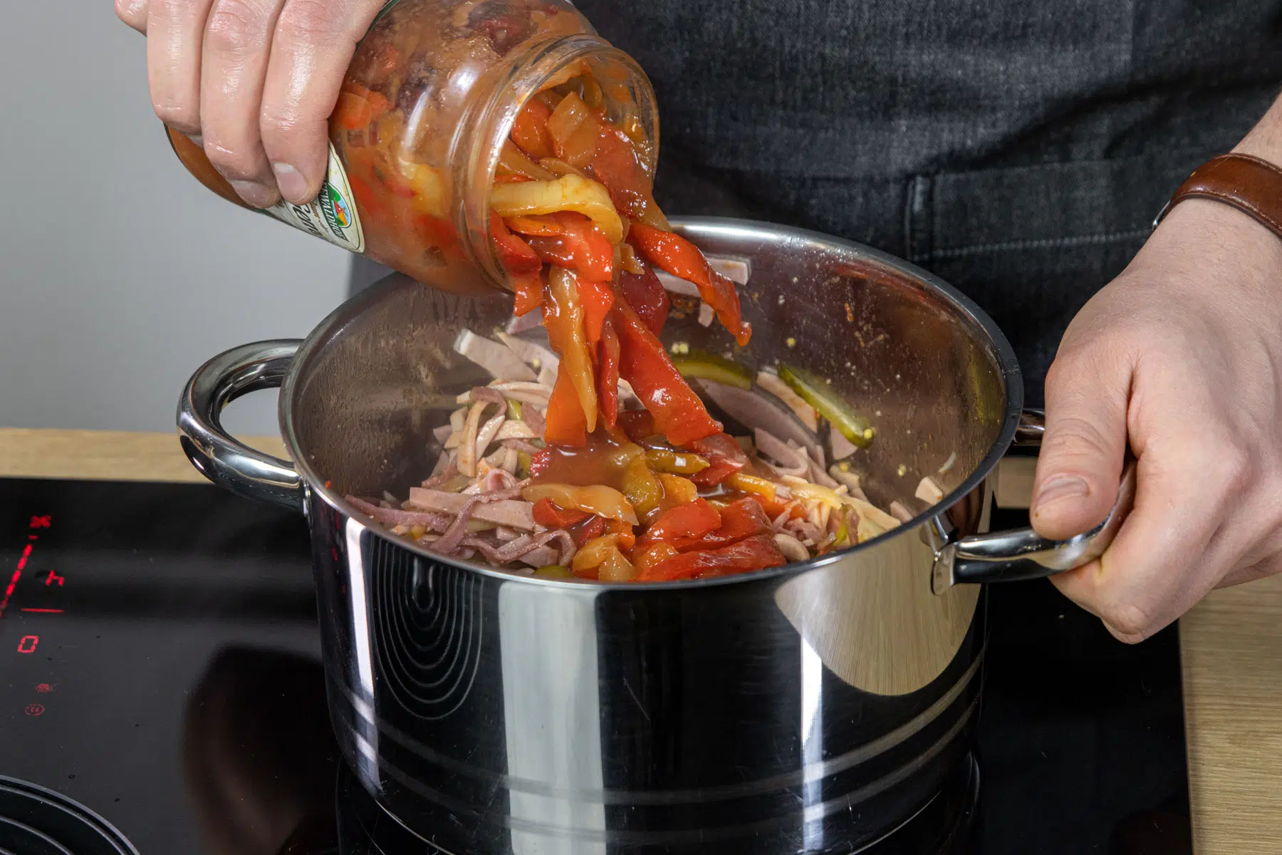 Das Öl in einem Topf erhitzen und das Fleisch kräftig anbraten. Rote Paprika Karotte eingelegte Gurken Tomatenmark und. Rezept für Soljanka mit Letscho.
